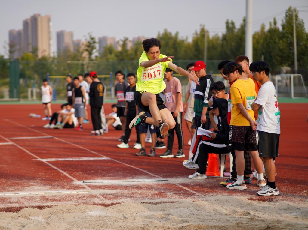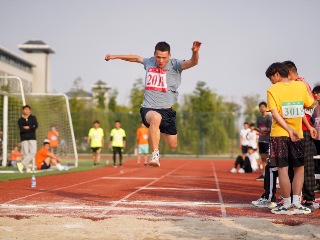离弦之箭般的助跑,空中的走步表演,引起阵阵惊叹,轻捷的身影在空中定格。运动场上有他们的飒爽英姿,运动场上有他们拼搏的身影,应对漫漫的征程,他们没有畏惧和退缩,任汗水打湿脊背,任疲惫充斥全身,依然奋力追赶,冲向远方!