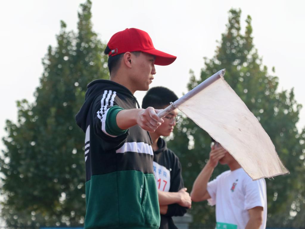 绿茵场上,骄阳之下,一群红色青年格外惹眼,他们有着一个自豪的称谓--青年志愿者。他们四处奔波,撒下汗水,不断地穿行于人群之中;他们默默无闻,却以最饱满的热情服务于全体师生;他们以自身行动践行着志愿者精神,使那操场上的一抹抹红成为赛场旁一道靓丽的景色。