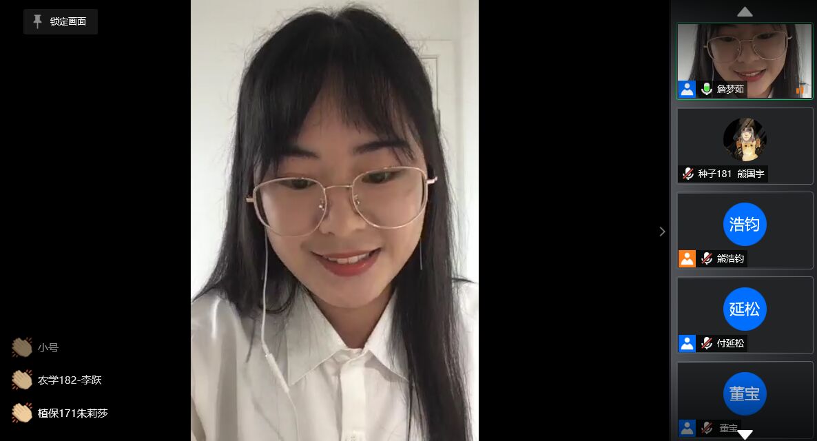 6月20日下午2:00,农学院第二届考研经验交流会于腾讯会议线上进行。参与本次会议的有农学院辅导员汪道兵及2017级学生,分享交流嘉宾有董宝、汪琴、杨毓贤、吴勇、杨奉水、付延松、邹晓曼、陶妹,会议由詹梦茹主持。